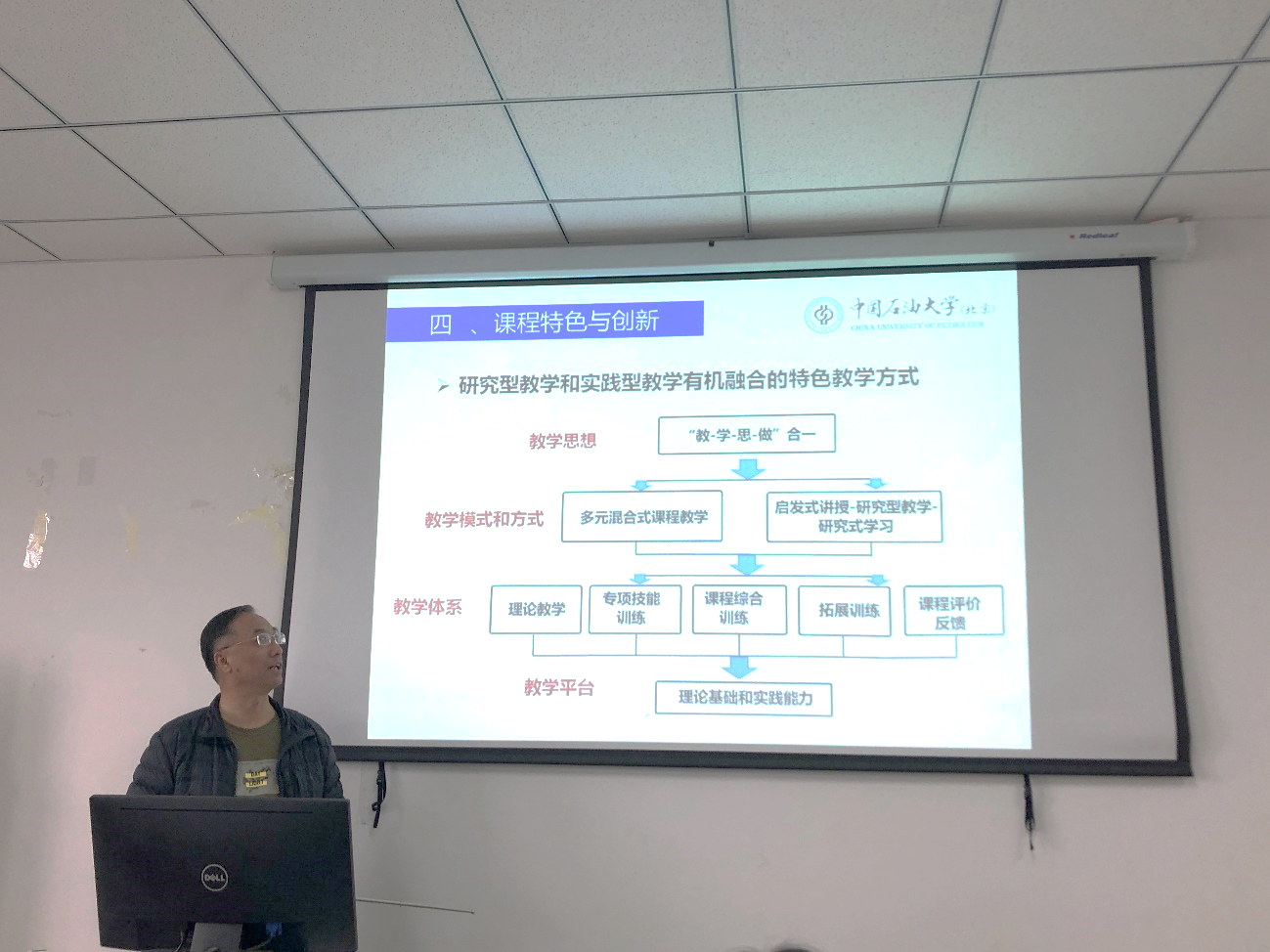 与会教师反响热烈,纷纷根据自身的教学经历展开激烈讨论,认为《石油地质学》课程的建设值得大家学习,并对《石油地质学》申报国家级线下一流课程的准备工作提出有效的建议或意见。会后,刘成林教授进行了总结,并提出在课程建设过程中,教学团队队伍建设的重要性,表达了对青年教师的殷殷期许。