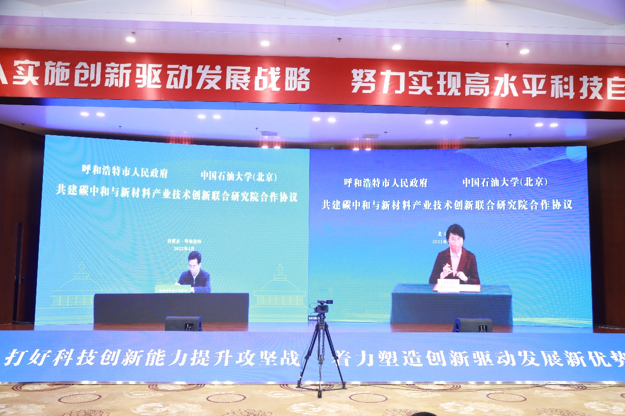 4月14日下午,中国石油大学(北京)与呼和浩特市人民政府以视频连线的方式举行共建联合研究院签约仪式。