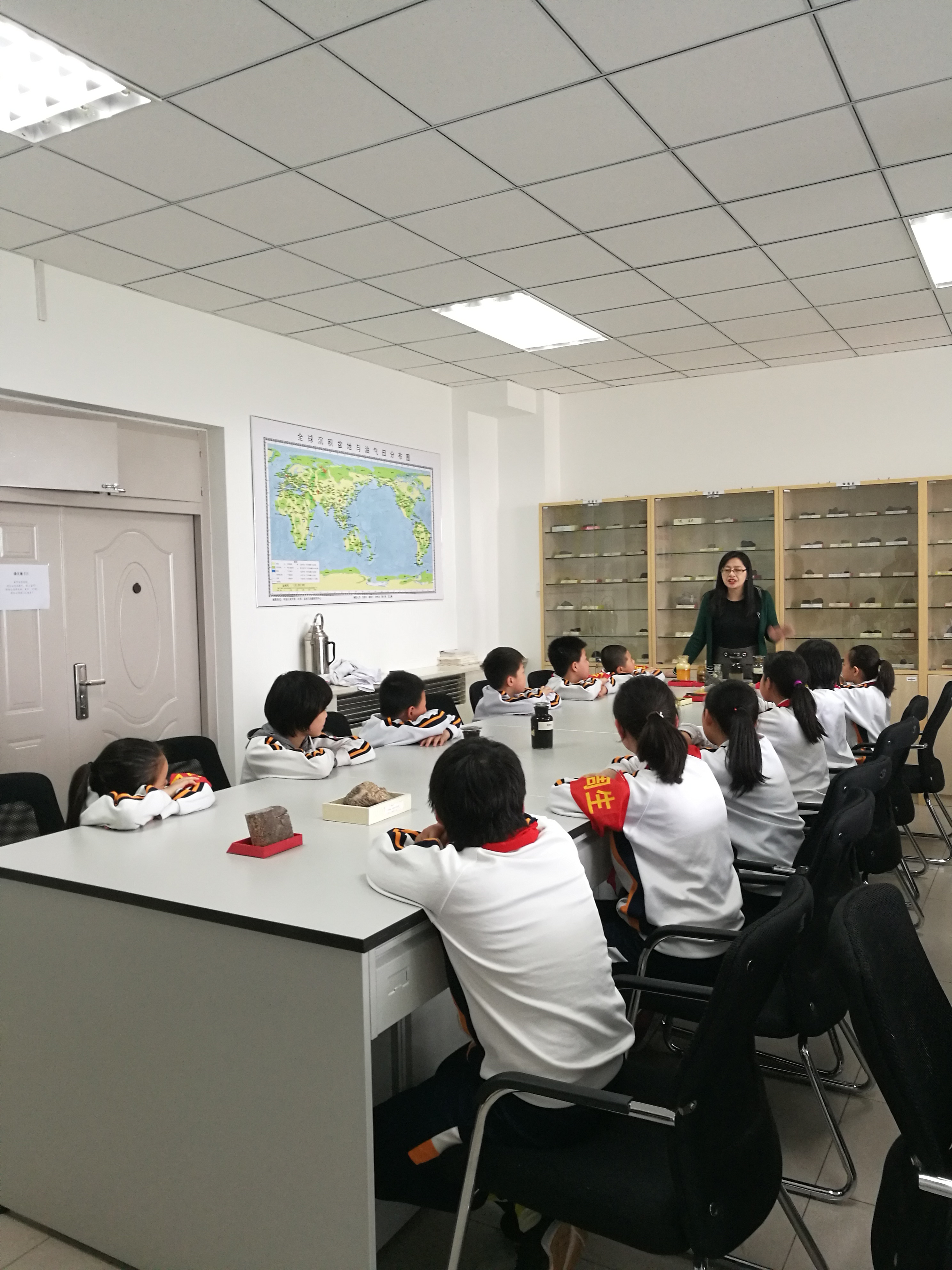 第一站是我们的地质科学博物馆,小朋友们兴致勃勃,看见恐龙标本后惊奇不已,被博物馆各种矿物和岩石所吸引。陈冬霞老师耐心、细致、深入浅出,小朋友们听得津津有味。随后参观了石油地质实验室,小朋友们可以亲自近距离接触油气储层的岩石样品,并且对石油的生成、运移和开采有了初步的了解。活动开展非常顺利,地球科学博物馆和实验中心除了承担学校教学任务,还面向社会公众,开展一系列科普活动,宣传石油文化和科学精神。