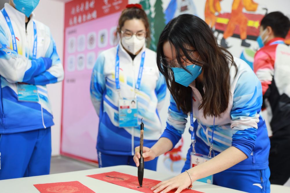 中除夕当天,北京冬奥会延庆赛区冬奥村里张灯结彩,志愿者和各代表团成员相聚一堂,庆祝欢乐祥和的春节。