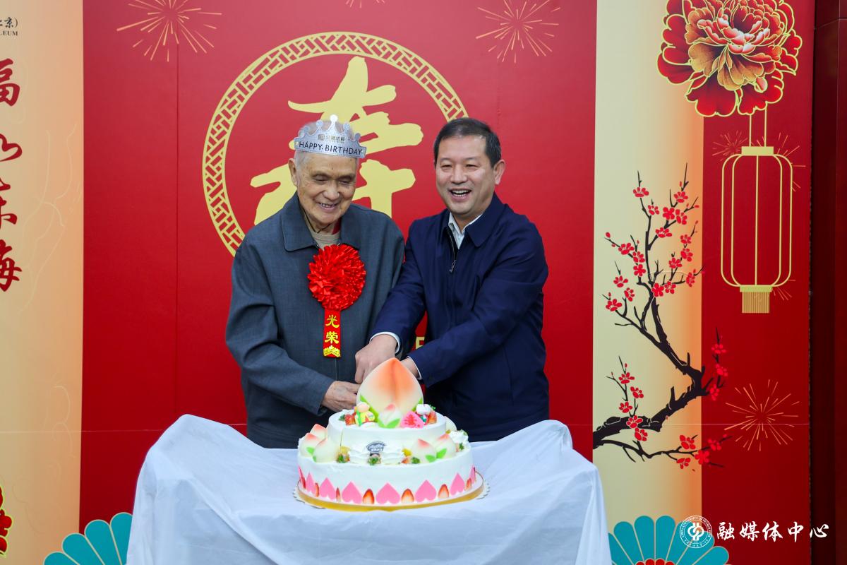 蒲俊霖向各位老领导、老同志致以亲切的问候,宣读了到场寿星名单。今年全校共有35位退休教职工喜迎70周岁、80周岁、90周岁寿辰,其中有13位寿星代表亲临集体生日会现场。