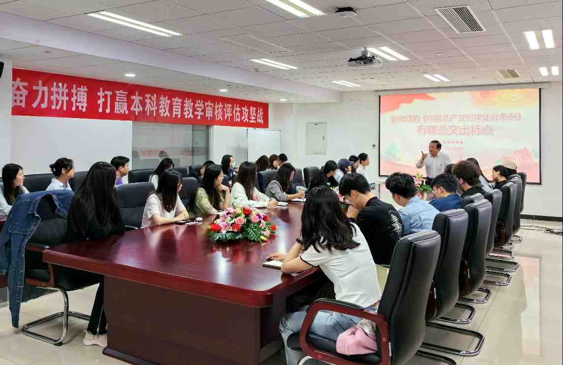 5月5日,中石大马克思主义学院举办学生党员党纪学习教育主题报告会,学院党委书记刘韵秋、副书记方百会分别作了主题报告,学院团委书记和40名学生党员参加报告会。