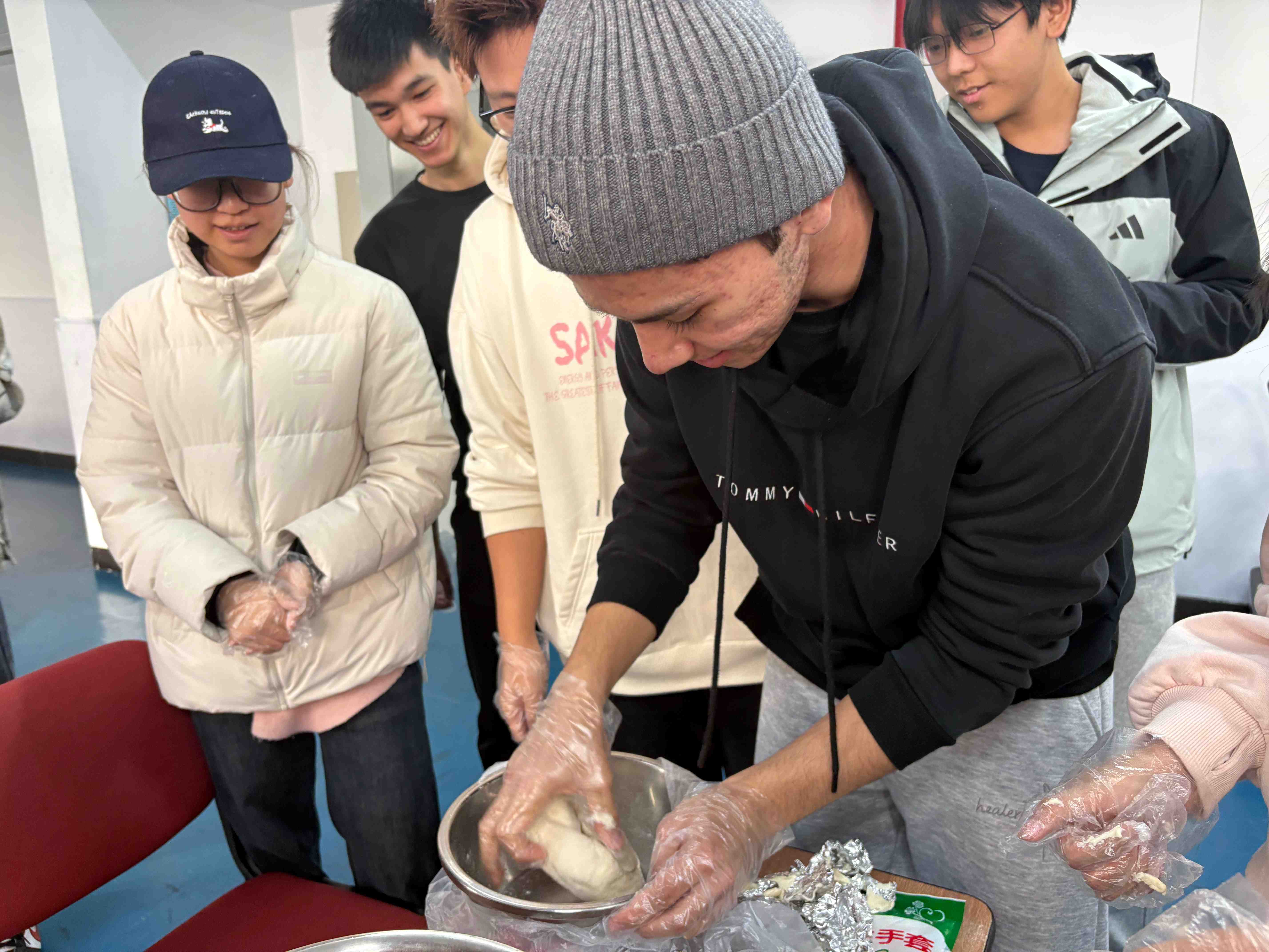 活动包括中国传统文化讲解、实践体验与互动交流环节。中外学子共同体悟冬至等中国传统节气的历史渊源、民俗传统及其蕴含的“团圆和谐”“迎新祈福”等文化内涵,一起制作饺子、汤圆等传统节令美食,感受中华文化的独特魅力与深厚底蕴。此外,中外青年还分享了各自国家的饮食及节日文化。
