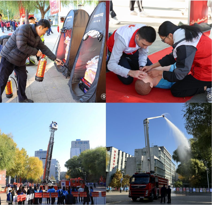 启动仪式结束后,与会人员先后参加了中国石油大学(北京)微型消防站宣传点、电动自行车火灾快速扑救试验、消防主题公交专线、消防车辆装备展示、消防产品辨真伪、消防剪纸等消防主题文化活动,学校结合自身消防安全宣传特色在微型消防宣传点设置了VR体验、电子灭火器灭火、模拟烟雾逃生、结绳体验、心肺复苏5个特色主题展区。