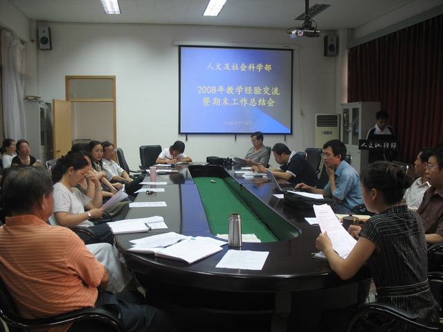 7月8日上午,人文及社会科学部在部会议室召开期末工作总结暨教学经验交流会。四位部领导根据分管工作分别进行学期工作总结,胡新华主任在工作总结前首先对全体教职工的大力支持和积极参与表示衷心的感谢,同时他指出:本学期来,人文社科部全体教师在深入学习十七大精神和两会精神的基础上,同心同力,强化内部管理,注重领导班子自身建设和基层教工党支部建设,高度重视教学和研究生人才培养工作,各教研室结合自身学科特点广泛参与校园文化建设,营造良好的人文氛围。