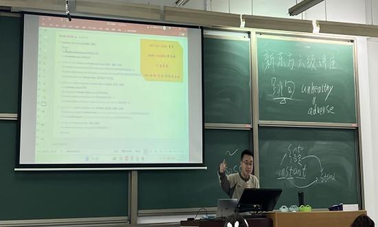 为帮助考生明确备考冲刺方向,突破重难点题型,增强学生技巧训练,中国石油大学(北京)马克思主义学院于11月27日下午在第三教学楼215教室举办大学英语六级考前冲刺提高讲座,并特邀新东方任俊峰老师分享答题经验。