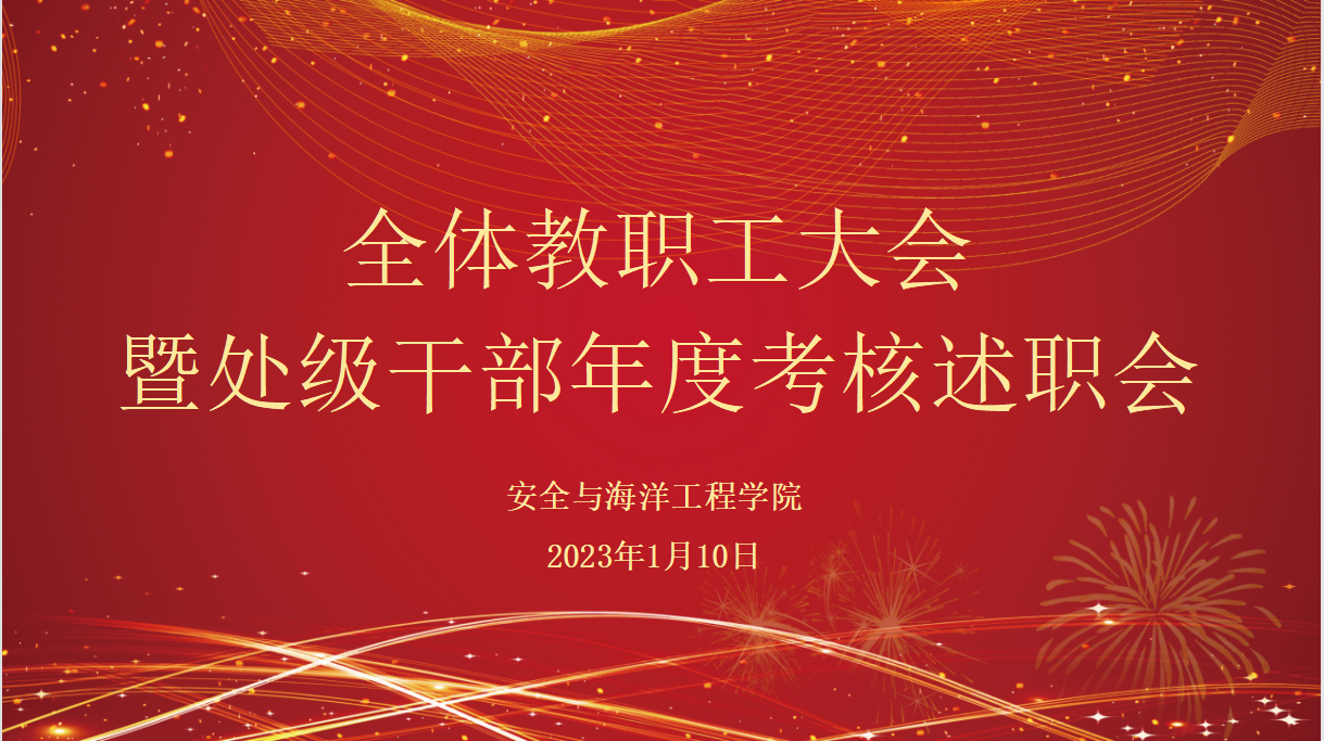1月10日上午,安全学院召开全体教职工大会暨处级干部年度考核述职会,学院领导班子及全体教职工参加会议,会议由学院党委书记孙为主持。