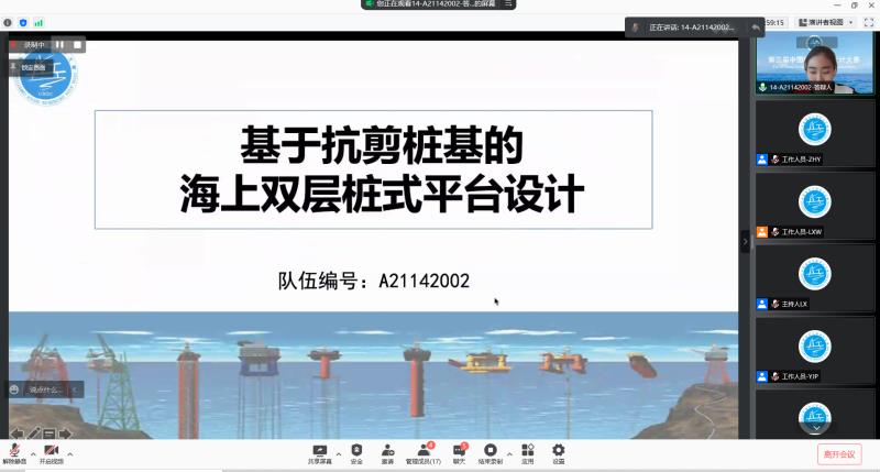 设计制作组线上答辩环节,来自中国海洋石油集团有限公司、中国石油天然气集团有限公司的12位评审专家担任评委。各参赛队伍播放模型测评视频,并从装置结构、设计思路、实测数据等方面对参赛作品进行了讲解。各评审专家从作品的内容、科技创新性以及工程实践性等方面进行提问,并对各参赛队伍作了点评。