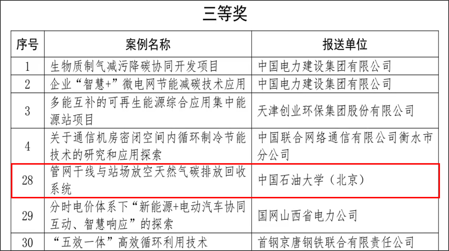 近日,在国务院国资委中国大连高级经理学院组织开展的2022年度碳达峰碳中和行动典型案例征集活动中,中石大安全工程系董绍华教授牵头报送的“管网干线与站场放空天然气碳排放回收”项目获三等奖。