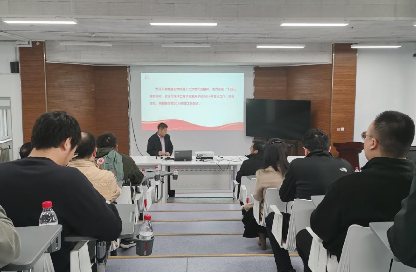 3月15日上午,安全与海洋工程学院在安全科技楼召开全体教职工大会,学院领导班子及全体教职工参会,特邀张来斌院士出席。本次会议部署了2024年度学院工作重点,并对研究生培养与指标分配等相关工作细则进行详细解读,全体与会教师对师德教育进行集中学习,观看违规案例警示与分析,加强学院师德师风建设。会议由学院党委书记孙为主持。