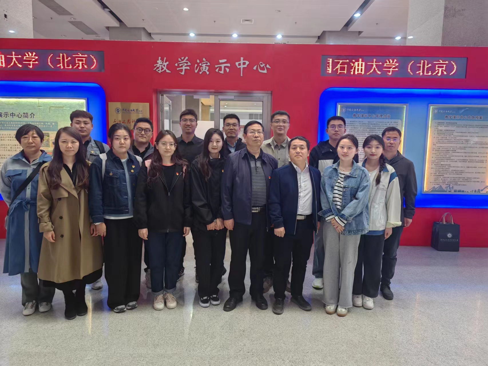 2023年4月20日下午,河北承德石油职业技术大学领导与学生团队来校,参观了石油之光科技馆,理学院团委书记张乐老师、王天老师陪同参观,讲解员李凯欣讲解仪器设备。