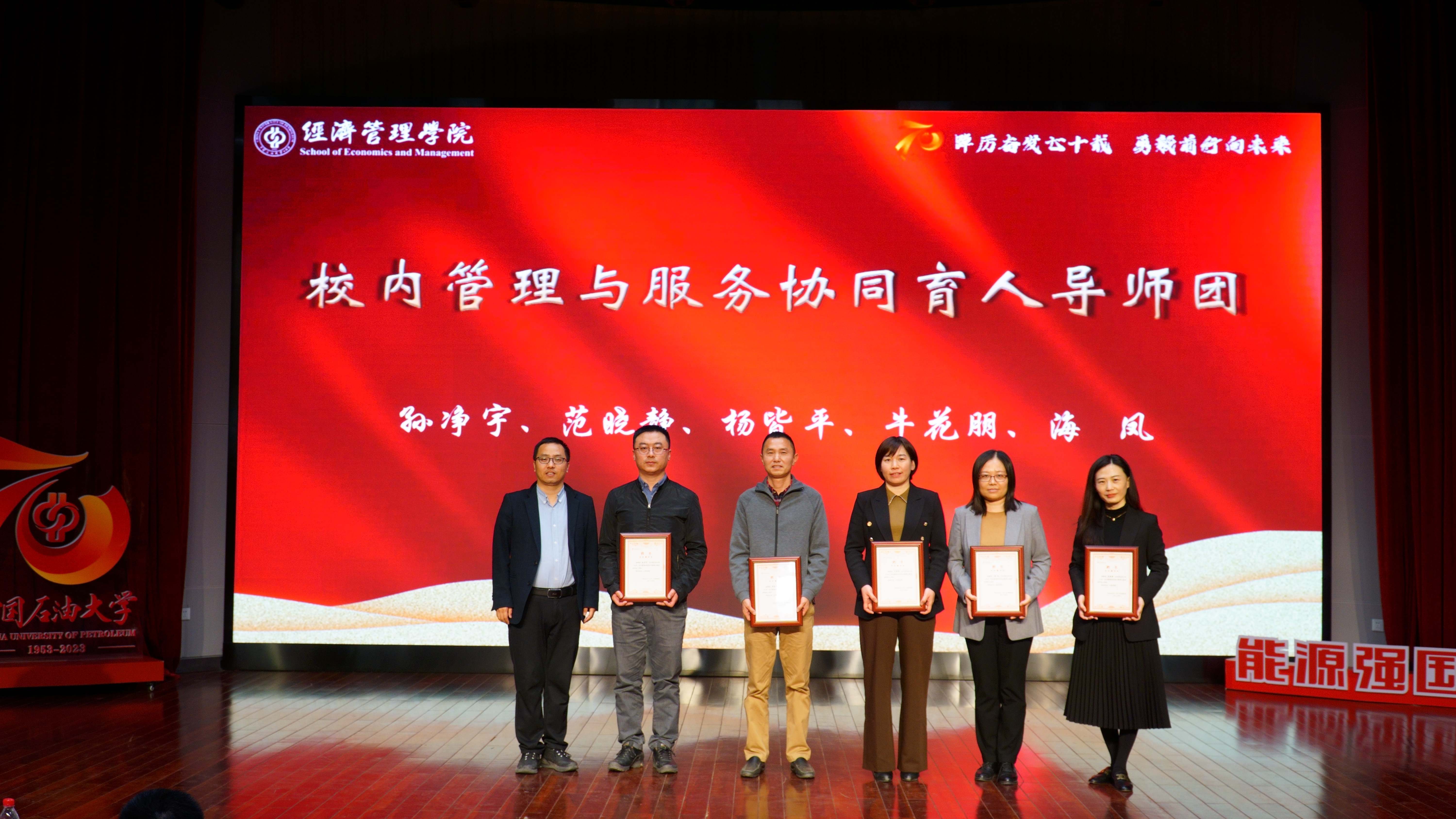 大会开展了经济管理学院协同育人导师团聘任仪式。分别为“校内管理与服务协同育人导师团”、“校内青年教师协同育人导师团”、“校友协同育人导师团”受聘教师颁发聘书。