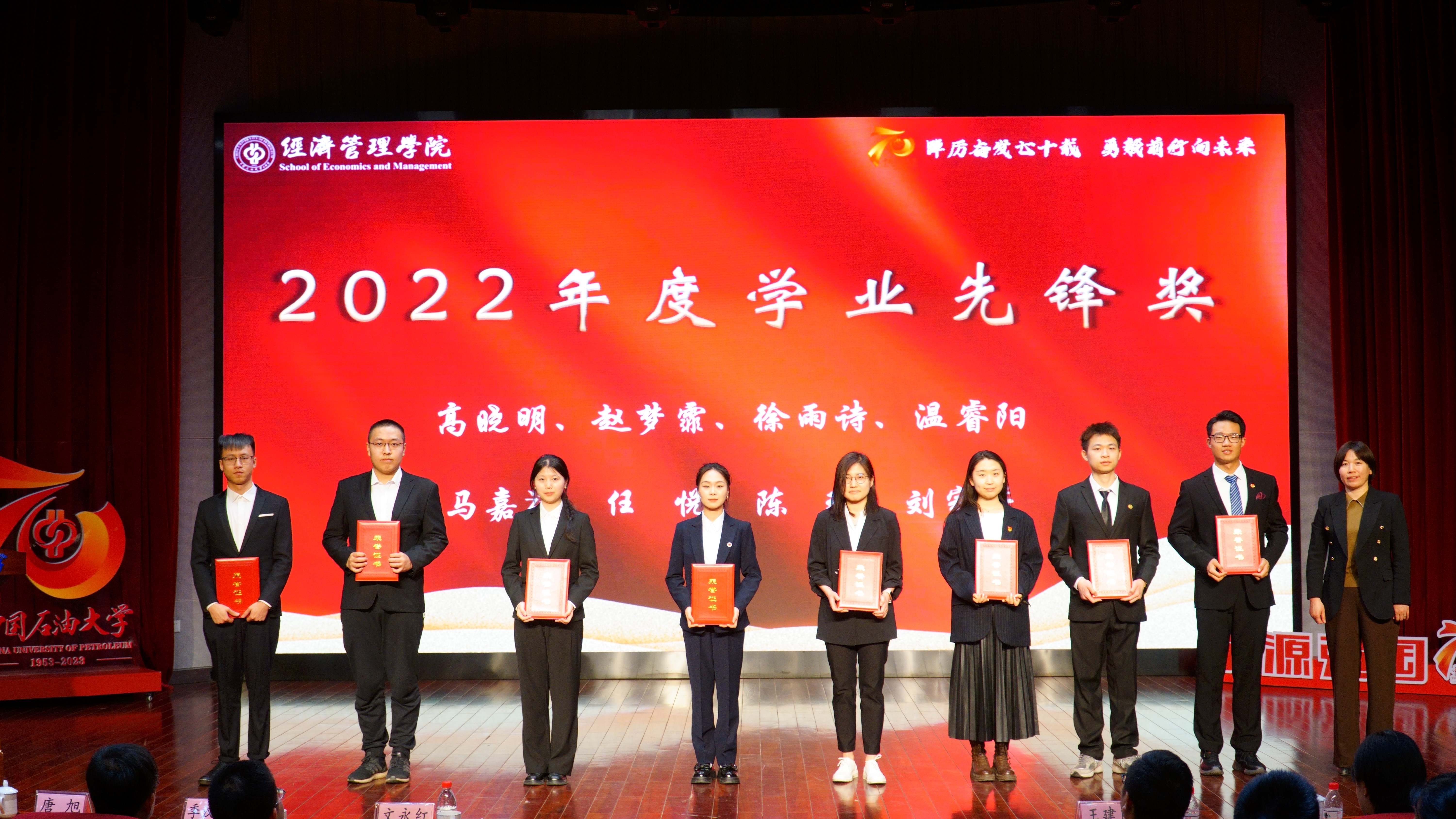 学院对2022年在党建、科研、人才、教学、学生、公共服务方面做出贡献的教职工进行表彰并颁发了奖杯和证书,激励全院教职工以先进为榜样,积极进取,勇担重任,开拓创新。对在校园文化建设、班团建设、创新创业、自立自强、学业、志愿服务等方面表现优秀的学生进行表彰并颁发证书,勉励全院学生学习先进典范,勤奋学习,不断充实自己,迎接挑战。