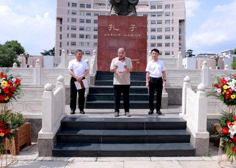7月2日的开班仪式由曲阜师范大学优秀传统文化教育中心副主任孙金杰主持,学员在庄严肃穆的孔子广场集体举行拜师礼、同诵人民教师誓词、献上花篮。体育与人文艺术学院党委书记张珣在开班致辞中讲话,提出要潜心研修,着力提升师德涵养境界。深入思考新时代教师的使命与担当。要学习先贤风范,反躬自省,在文化浸润中不断提升自身的道德情操、职业理想和仁爱之心。