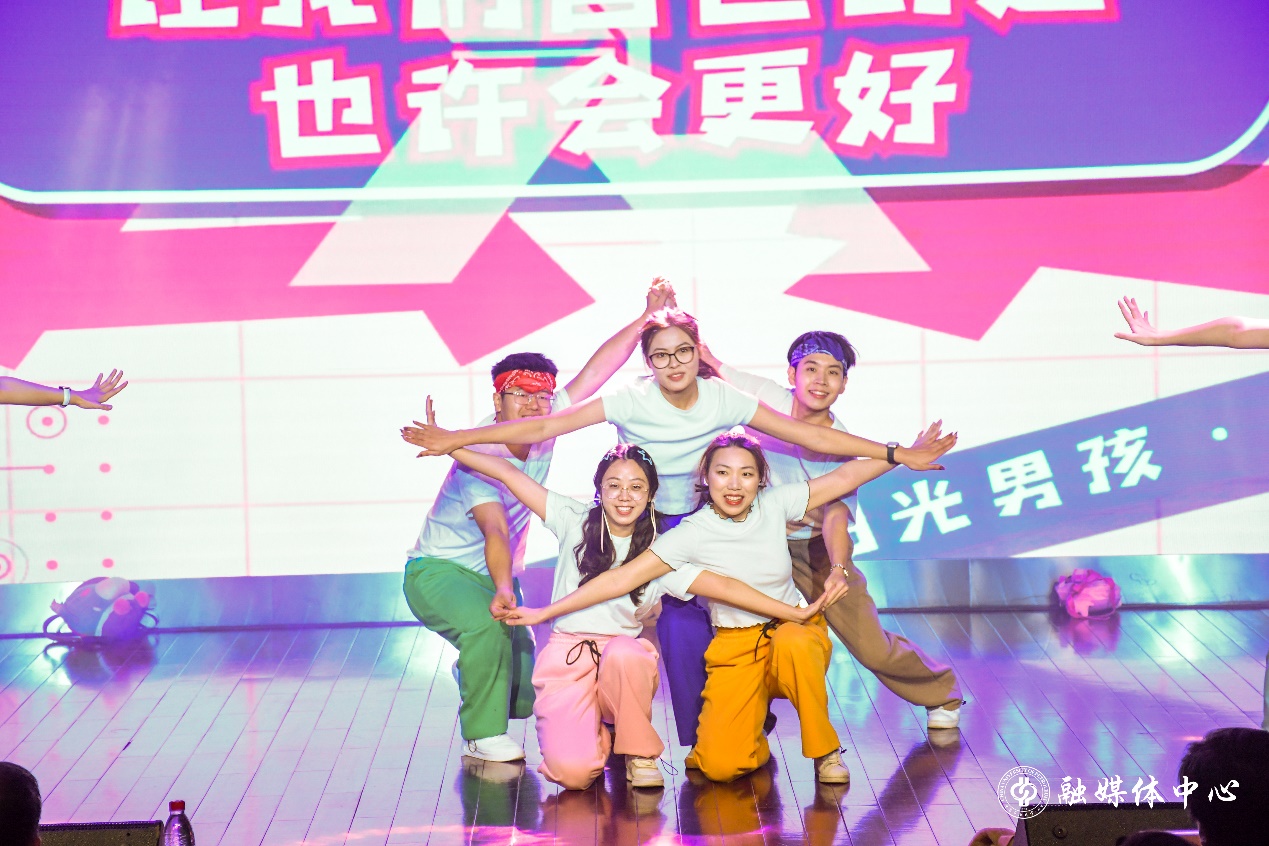在周博男老师的指导下,两院教师在一次次的排练中逐步适应舞步、找到节奏。经过所有老师一个月的共同努力,阳光男孩、阳光女孩们最终向全校教师呈现了一场活力四射、动感热烈的舞蹈节目,点燃整个联欢会的气氛。