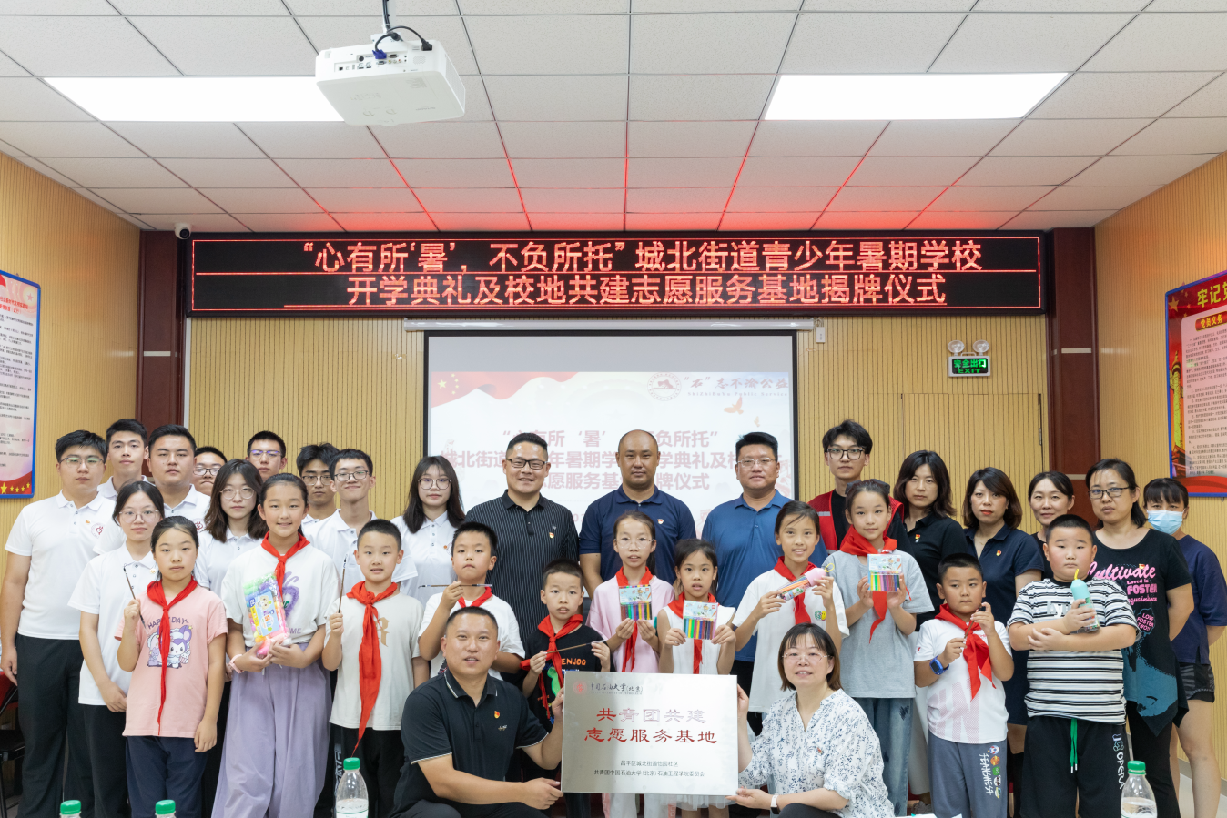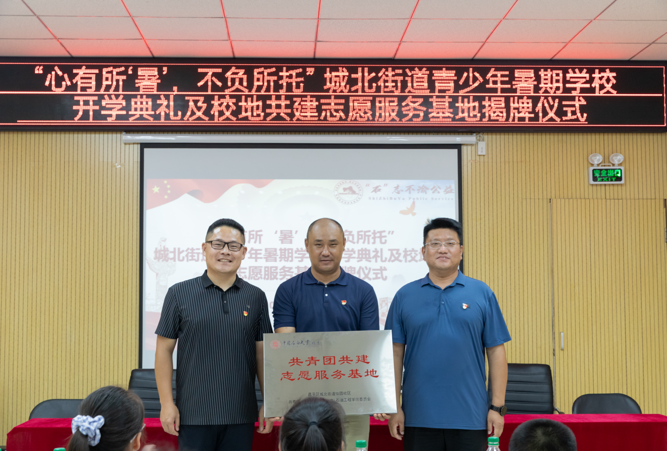 8月12日上午,“心有所‘暑’,不负所托”昌平区城北街道青少年暑期学校开学典礼及校地共建志愿服务基地揭牌仪式在城北街道怡园社区举行。城北街道党工委副书记赵国宇、怡园社区党总支书记赵志鹏,城北街道、怡园社区工作人员,中国石油大学(北京)石油工程学院学生工作负责人、“石”志不渝社会实践团、“铁人先锋”社会实践团全体成员,参加暑期学校的学生及家长代表参加活动。活动由怡园社区团委委员王子凡主持。