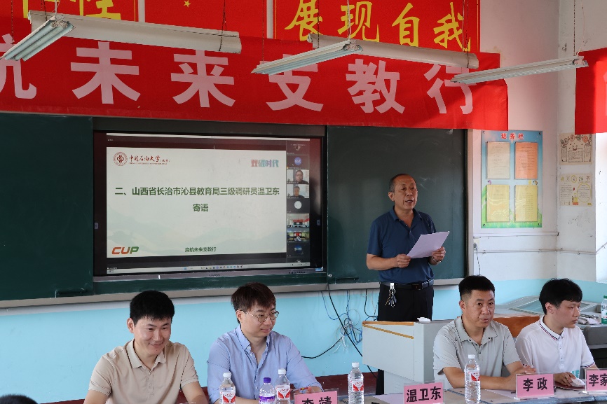 肖坤对沁县教育局、中国海油研究总院的支持表示感谢。他介绍了学校党支部“1+4”示范共建活动相关要求,以及几个共建党支部两年来在人才培养、科技攻关、社会服务等中心工作中的工作成效,并表示本次夏令营活动不仅是中石大师生践行社会责任、实现自我价值的重要途径,更是深入推进大中小学思想政治教育一体化建设的有益实践。