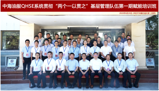2024年6月24日,由我校承办的中海油服QHSE系统贯彻“两个一以贯之”基层管理队伍第一期赋能培训班顺利开班。中海油田服务股份有限公司质量安全部总经理周治春、中国石油大学(北京)网络与继续教育学院院长陈春茂出席开班式并讲话,开班式由中海油田服务股份有限公司质量安全部岗位经理刘广宇主持。