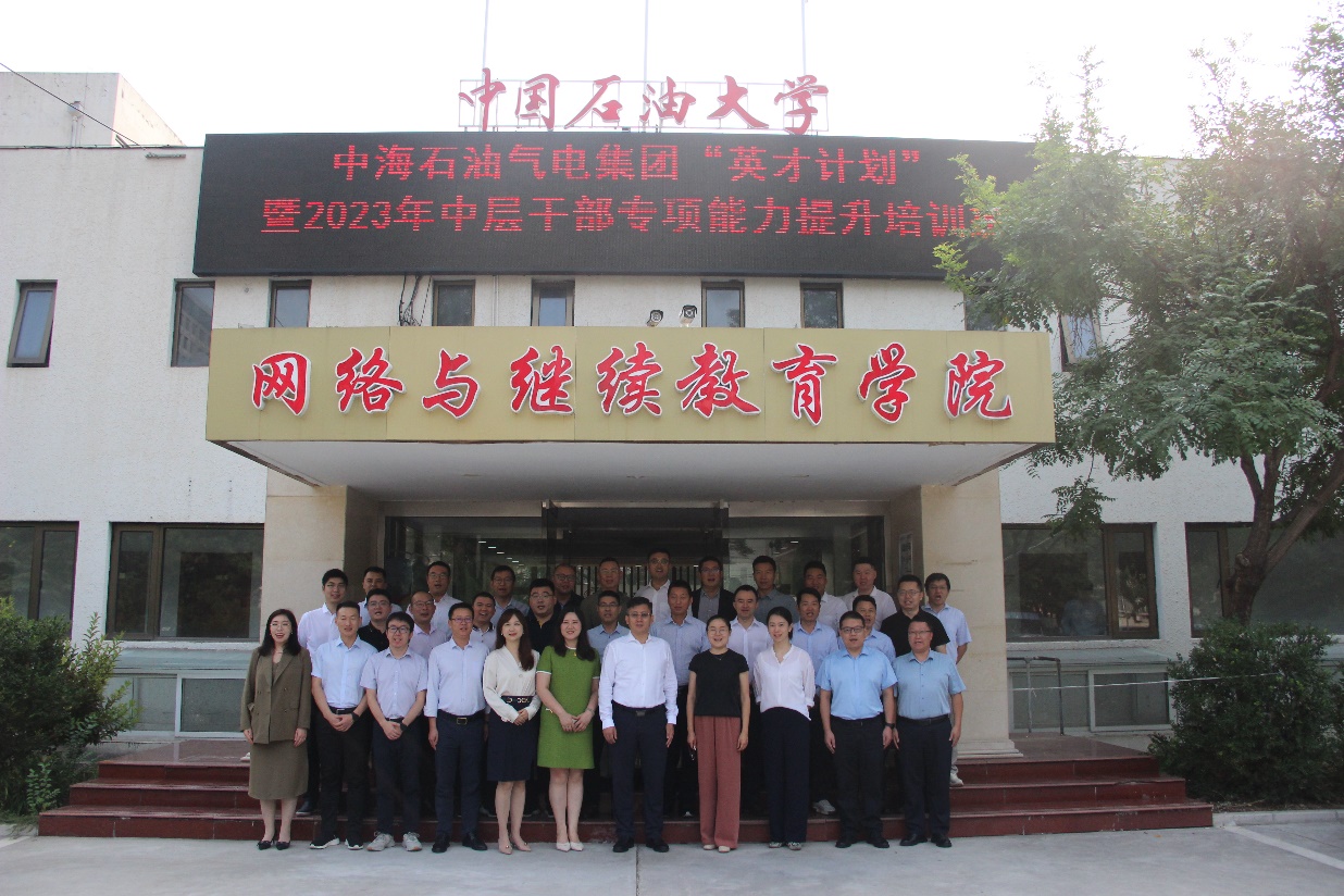 2023年9月16日,由中国石油大学(北京)承办的“中海石油气电集团‘英才计划’暨2023中层干部专项能力提升培训班”顺利开班。中海石油气电集团有限责任公司(下称“气电集团”)党委组织部部长、人力资源部总经理李磊,中国石油大学(北京)网络与继续教育学院副院长刘一凝,气电集团人力资源部劳动用工经理蒋涛出席开班仪式,气电集团人力资源部人才开发经理苗青主持了开班式。