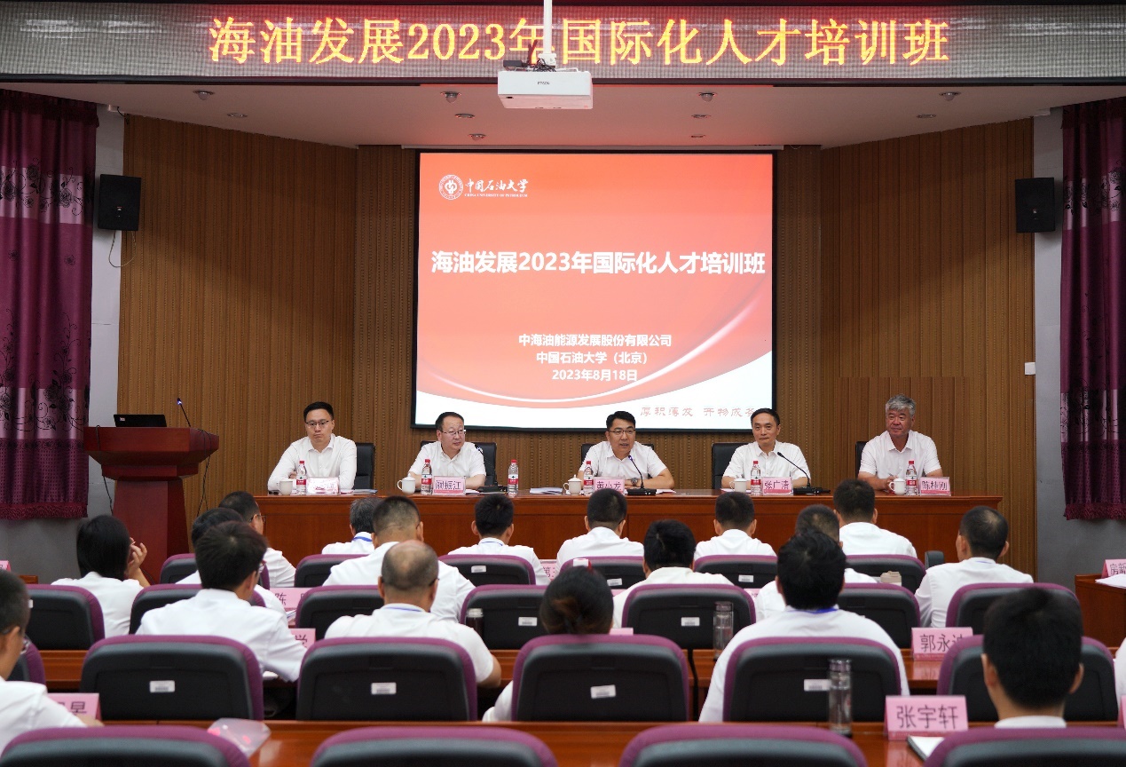2023年8月18日,我院承办海油发展2023年国际化人才培训班顺利开班。中海油能源发展股份有限公司副总经理黄小龙、中国石油大学(北京)副校长张广清出席开班典礼并讲话。