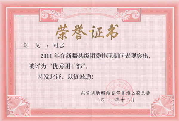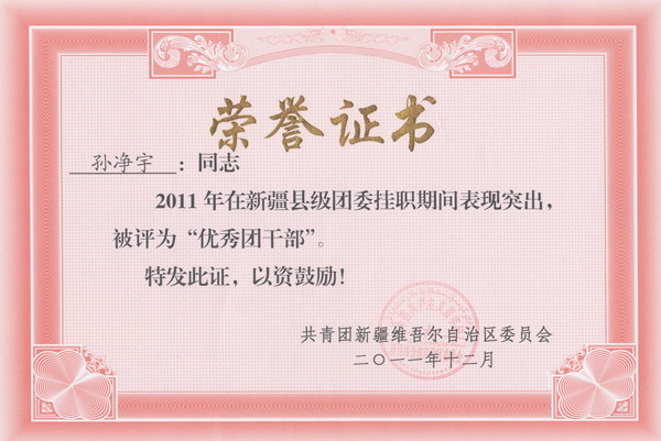 两位挂职干部克服困难、牢记使命,从各方面高标准严格要求自己,在“感恩、自信、坚韧、担当、拼搏、奉献”的新疆青年时代精神鼓舞下,积极深入乡镇、街道、小学等基层开展团情调研,主动调整心态融入工作,迅速完成了从高校管理人员到地方团委书记的角色转变。孙净宇、彭斐两位同志以崭新的思路、务实的作风、良好的业绩,赢得了援建地区领导和群众好评,分别荣获共青团新疆维吾尔自治区委员会授予的“优秀团干部”等荣誉称号,充分展现了中国石油大学青年干部过硬的素质和良好的形象。
